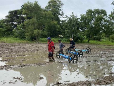လှည်းကူးမြို့နယ် သာယာကုန်းကျေးရွာတွင် မိုးစပါး မျိုးစေ့ချကိရိယာ (Seeder) ဖြင့် မျိုးစေ့ချခြင်း ကွင်းသရုပ်ပြ စိုက်ပျိုးပွဲ ကျင်းပ