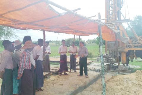 မိတ္ထီလာမြို့နယ် ခင်သာကျေးရွာ၌ စက်ရေတွင်းတူးဖော်ခြင်းလုပ်ငန်း ဆောင်ရွက်နေမှုကို တိုင်းဒေသကြီးဦးစီးမှူး ဦးအောင်မျိုးလွင်နှင့်အဖွဲ့မှ ကွင်းဆင်းစစ်ဆေး