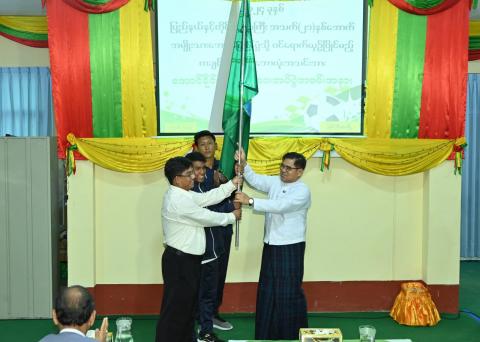 ၂၀၂၄ ခုနှစ်၊ တိုင်းဒေသကြီးနှင့်ပြည်နယ် အသက်(၂၁)နှစ်အောက် အမျိုးသားဘောလုံးပြိုင်ပွဲသို့ သွားရောက်ယှဉ်ပြိုင်ကြမည့် ကချင်ပြည်နယ်လက်ရွေးစင် အသက်(၂၁)နှစ်အောက် အမျိုးသားဘောလုံးအသင်းအား ပြည်နယ်ဝန်ကြီးချုပ်က အောင်နိုင်ရေးအလံနှင့်ထောက်ပံ့ငွေများ ပေးအပ်ပွဲအခမ်းအနားကို ယမန်နေ့နံနက် ၁၀ နာရီက ပြည်နယ်အားကစားနှင့်ကာယပညာဦးစီးဌာနရုံးခန်းမ၌ ကျင်းပပြုလုပ်သည်။