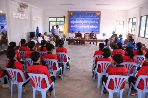 ရှမ်းပြည်နယ်ဝန်ကြီးချုပ်(ဖလား) အသက်(၂၅)နှစ် အောက် အမျိုးသမီးဘောလုံးပြိုင်ပွဲဝင်မည့် တာချီလိတ်မြို့နယ်လက်ရွေးစင်ဘောလုံးအသင်းအား အောင်နိုင်ရေးအလံပေးအပ်