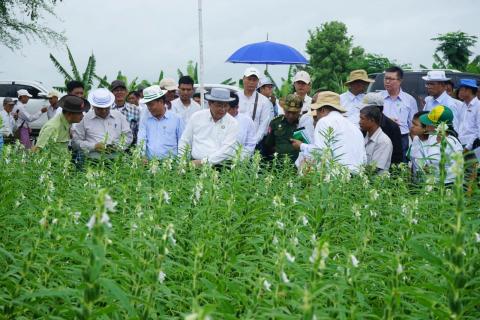 မင်းဘူး(စကု)မြို့နယ်၌ ဆီထွက်သီးနှံစိုက်ပျိုးထုတ်လုပ်မှု တိုးတက်မြင့်မားရေး နွေနှမ်းသီးနှံအား ဘောင်ကြီးတင်စနစ်ဖြင့် သရုပ်ပြ စမ်းသပ်စိုက်ပျိုးထားရှိမှု အောင်မြင…