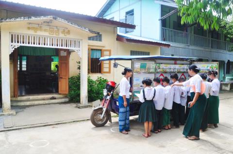 ဝေါမြို့နယ်၌ စာဖတ်ရှိန်မြှင့်တင်ရေး နယ်လှည့်သုံးဘီးမော်တော်ယာဉ်ဖြင့် စာအုပ်စာစောင်များကွင်းဆင်း ငှားရမ်းပေး