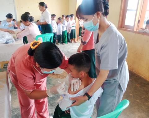 ပင်လုံမြို့၊ အ.ထ.က (၂) ကျောင်း၌ ကျောင်းသား/ကျောင်းသူလေးများအား ဆုံဆို့-မေးခိုင် ထပ်ဆောင်းကာကွယ်ဆေးထိုးနှံပေး