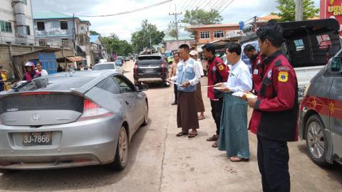 မြဝတီမြို့ အမှတ် (၃) ရပ်ကွက်၌ သဘာဝဘေးအန္တရာယ်ဆိုင်ရာ အသိပညာပေးနှိုးဆော်ခြင်းနှင့် လက်ကမ်းစာစောင်များဖြန့်ဝေ