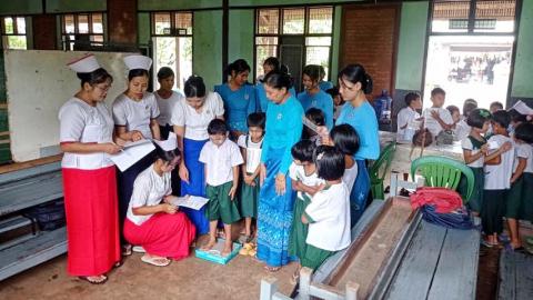 မွန်ပြည်နယ်၊ မုဒုံမြို့နယ်တွင် စာသင်ကျောင်း အခြေပြုကျောင်း ကျန်းမာရေးအသိပညာပေး ဟောပြောပွဲနှင့် ကျောင်သား/သူများအား ကျန်းမာရေးစောင့်ရှောက်ပေးခြင်းကို ယနေ့နံနက်ပိုင်းက အ.မ.က(ကျောင်းနောက်) စာသင်ကျောင်း၌ ဆောင်ရွက်သည်။