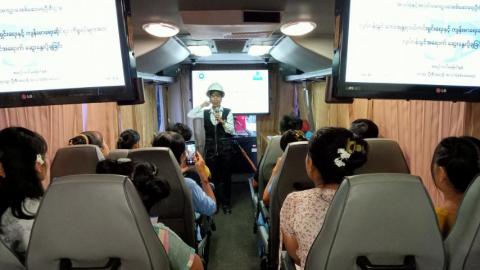 မြောက်ဥက္ကလာပမြို့နယ် ရွှေပေါက်ကံစက်မှုဇုန်၌ သင်ထောက်ကူပြု မော်တော်ယာဥ်ဖြင့် လုပ်ငန်းခွင်အရောက် အသိပညာပေးဆွေးနွေးဆောင်ရွက်