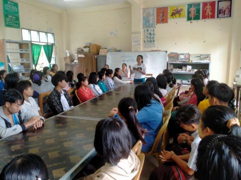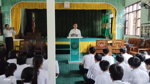သံတောင်ကြီးမြို့ အခြေခံပညာအထက်တန်းကျောင်း စာကြည့်တိုက်ခန်းမတွင် စာဖတ်ဝိုင်းပြုလုပ်