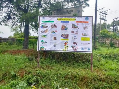 သံတောင်ကြီးမြို့နယ်တွင် မြေပြိုဘေးအန္တရာယ်အကြောင်းသိကောင်းစရာ ပညာပေးပိုစတာစိုက်ထူ