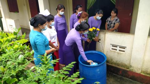 နတ်မောက်မြို့ အမှတ် (၁) အခြေခံပညာအထက်တန်းကျောင်းတွင် သွေးလွန်တုပ်ကွေးရောဂါ ကြိုတင်ကာကွယ်ရေးအတွက် အဘိတ်ဆေးများခပ်