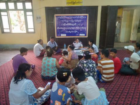 ရန်ကုန်တိုင်းဒေသကြီး၊ သင်္ဃန်းကျွန်းခရိုင်၊ တောင်ဥက္ကလာပမြို့နယ် အမှတ် (၁၀) ရပ်ကွက် ဟေမဝန်ဓမ္မာရုံ၌ ပန်းခင်းစီမံချက်-၃ ဖြင့် အိမ်ထောင်စုလူဦးရေစာရင်းနှင့် နိုင်ငံသားစိစစ်ရေးကတ်ပြားများ ကွင်းဆင်းဆောင်ရွက်ပေးခြင်းကို ဇွန်လ (၈) ရက်နေ့ နံနက် (၁၀) နာရီအချိန်က ဆောင်ရွက်ပေးလျက်ရှိသည်။