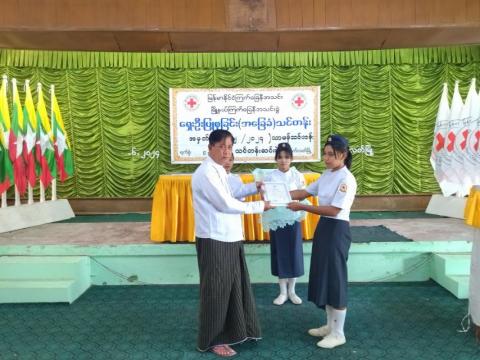 ဧရာဝတီတိုင်းဒေသကြီး၊ ဖျာပုံခရိုင်၊ ကျိုက်လတ်မြို့နယ်တွင် မြန်မာနိုင်ငံကြက်ခြေနီအသင်း၏ ကျိုက်လတ်မြို့နယ် ကြက်ခြေနီအသင်းခွဲမှ ဖွင့်လှစ်သော ရှေးဦးပြုစုခြင်း (အခြေခံ) သင်တန်းအမှတ်စဉ် (၂/၂၀၂၄) သာမန်သင်တန်း သင်တန်းဆင်းပွဲကို ယနေ့နံနက် (၁၀) နာရီက မြို့နယ်အထွေထွေအုပ်ချုပ်ရေးဦးစီးဌာန၊ ရွှေဝါလတ်ခန်းမ၌ ကျင်းပခဲ့ကြောင်း သိရသည်။