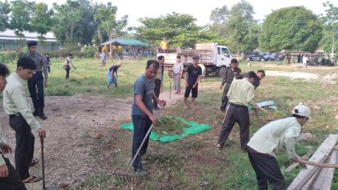 တမူးမြို့တွင် ကျောင်းနှင့် ကျောင်းပတ်ဝန်းကျင် သန့်ရှင်းသာယာရေး ဌာနဆိုင်ရာများမှ စုပေါင်းသန့်ရှင်းရေးဆောင်ရွက်
