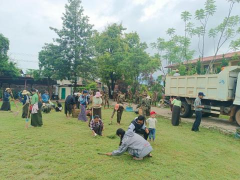 ဟိုပုံးတပ်နယ်မှူး ဗိုလ်မှူးချုပ် သိန်းနိုင် ဟိုပုံးမြို့ အမှတ်(၂) အခြေခံပညာအထက်တန်းကျောင်း စုပေါင်းသန့်ရှင်းရေးဆောင်ရွက်နေမှုအားကြည့်ရှု