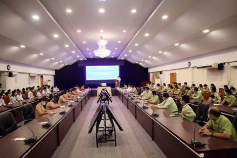 မွန်ပြည်နယ်ဝန်ကြီးချုပ် ဦးအောင်ကြည်သိန်း မုန်တိုင်းဘေးအန္တရာယ်နှင့် ရေဘေးအန္တရာယ်ရှာဖွေကယ်ဆယ်ရေး ဇာတ်တိုက်လေ့ကျင့်ခြင်းအခမ်းအနားတက်ရောက်