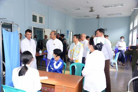 ရှမ်းပြည်နယ်အစိုးရအဖွဲ့၏ ဦးဆောင်မှုဖြင့် ကလောမြို့နယ်အထူးကုဆရာဝန်ကြီးများက ဘော်ဆိုင်းဒေသခံ ပြည်သူများအား ဇွန်လ (၄) ရက် နံနက် (၈) နာရီက ကလောမြို့နယ်၊ ဘော်ဆိုင်းမြို့ပြည်သူ့ဆေးရုံတွင် ဆေးကုသစမ်းသပ် ပေးနေမှုကို ရှမ်းပြည်နယ်ဝန်ကြီးချုပ် ဦးအောင်အောင်၊ ပြည်နယ်လုံခြုံရေးနှင့် နယ်စပ်ရေးရာဝန်ကြီး၊ ပြည်နယ်လူမှုရေးရာဝန်ကြီး၊ ခရိုင်၊ မြို့နယ်အဆင့်ဌာနဆိုင်ရာများနှင့် တာဝန်ရှိသူတို့က ဆေးလာရောက်ကုသနေသော ဒေသခံပြည်သူများကို ကြည့်ရှုအားပေးစကား ပြောကြားခဲ့ပြီး ဘော်ဆိုင်းပြည်သူ့ဆေးရုံအတွက် ပြည်နယ်ဝန်ကြီးချုပ် ဦးအောင်အောင်က ထောက်ပံ့ငွေပေးအပ်ရာ ဘော်ဆိုင်းပြည်သူ့ဆေးရုံ ဆရာဝန်ကြီးနှင့် ဆရာမများမှ လက်ခံရယူကြ သည်။