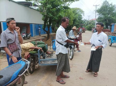 ပဲခူးတိုင်းဒေသကြီး၊ ပဲခူးခရိုင်၊ ကျောက်တံခါးမြို့နယ်တွင် မုန်တိုင်းအန္တရာယ် အသိပညာပေး လက်ကမ်းစာစောင်များဖြန့်ဝေခြင်းကို ယနေ့ နံနက် (၉)နာရီက စည်ပင်သာယာမြို့မစျေးနှင့် လူစည်ကားရာနေရာများတွင် ဆောင်ရွက်ခဲ့သည်။