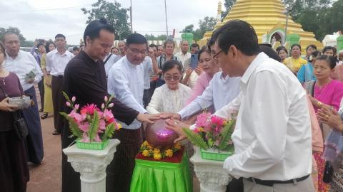 မြစိမ်းရောင်တောင်တော်သာသနာ့နယ်မြေ၌ အင်းဝအာရုဏ်ခံတန်ဆောင်းတော်ကြီး ရေစက်ချမင်္ဂလာနှင့် ဓမ္မစကြာမုနိဗုဒ္ဓရုပ်ပွားတော်မြတ်ကြီး ဗုဒ္ဓဘိသေက ဘုရားအနေကဇာတင်ခြင်း အခမ…