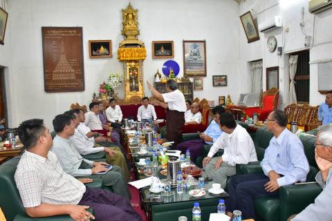 မန္တလေးတိုင်းဒေသကြီး၊ ညောင်ဦးခရိုင်၊ ညောင်ဦးမြို့နယ် အနော်ရထာမင်းကြီးနှင့် ကျန်စစ်သားမင်းကြီးတည်ထားကိုးကွယ်ခဲ့သည့် ရွှေစည်းခုံစေတီတော်ကြီး လုံးတော်ပြည့် ရွှေသင်္ကန်းကပ်လှူ ပူဇော်နိုင်ရန်ကြာမှောက်၊ ကြာလှန်နှင့်ရွဲလုံးကြီးများရှိ ရွှေပြားများ ပြန်လည်ပြုပြင်၍ ရွှေသင်္ကန်းကပ်လှူပူဇော်နိုင်ရေးနှင့် ကြာခံကြီး၊ကြေးဝန်း၊ ရှစ်မြှောင့်ချိုး၊ အရန်စေတီ(၄)ဆူ၊ အထက်ပစ္စယံတို့အား ရွှေသင်္ကန်းကပ်လှူနိုင်ရေး၊ ရွှေမိုက်ထုတ်ယူနိုင်ရေး လုပ်ငန်းညှိနှိုင်းအစည်းအဝေးကို ယမန်နေ့ နံနက် ၉ နာရီခွဲအချိန်က ရွှေစည်းခုံစေတီတော်ကြီး ဘဏ္ဍာတော်ထိန်းဂေါပကအဖွဲ့ရုံးခန်းတွင် ကျင်းပပြုလုပ်ခဲ့သည်။
