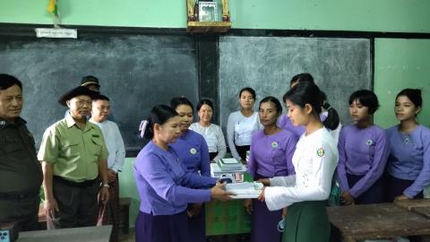 ရှမ်းပြည်နယ်(တောင်ပိုင်း)၊ ပအိုဝ်းကိုယ်ပိုင်အုပ်ချုပ်ခွင့်ရဒေသ၊ ဆီဆိုင်မြို့နယ်အတွင်း ပြန်လည်ဝင်ရောက်နေထိုင်သည့် ဒေသခံပြည်သူများအား အမျိုးသားသဘာဝဘေးအန္တရာယ်ဆိုင်ရာ စီမံခန့်ခွဲမှုကော်မတီမှ တစ်လစာဆန်ရိက္ခာများ ထောက်ပံ့ပေးအပ်ခြင်းကို ယနေ့နံနက် (၉) နာရီခွဲအချိန်က ဇဝနာရာမပရိယတ္တိစာသင်တိုက် ဘုန်းတော်ကြီးကျောင်း၌ ဆောင်ရွက်ခဲ့သည်။