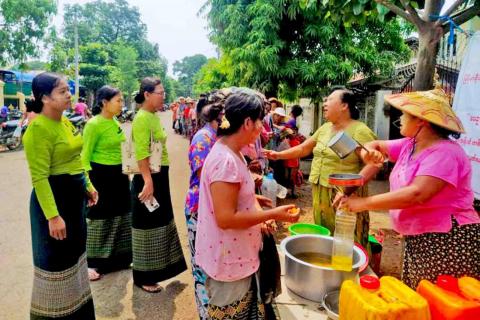 ပွင့်ဖြူမြို့နယ်၌ ဒေသခံပြည်သူများ ဆီစားသုံးမှု ဖူလုံစေရန် သက်သာသောဈေးနှုန်းဖြင့် စားအုန်းဆီများ ဖြန့်ဖြူးရောင်းချပေး
