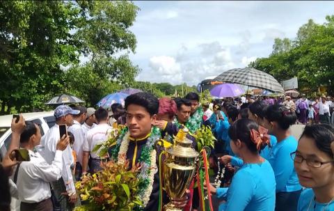 ဧရာဝတီတိုင်းဒေသကြီး အစိုးရအဖွဲ့ ဝန်ကြီးချုပ်ဖလား ၂၀၂၄ခုနှစ်၊ အသက်(၂၁)နှစ်အောက် (အမျိုးသား) ဘောလုံးပြိုင်ပွဲတွင် အောင်ပွဲရရှိခဲ့သော ဖျာပုံခရိုင်ကိုယ်စားပြု အားကစားသမားများအား ယနေ့နံနက်ပိုင်းက ကျိုက်လတ်မြို့နယ်အဝင် ကြိုဆိုပါ၏ဆိုင်းဘုတ်၊ ဓမ္မဝိဟာရဘိုးဘွားရိပ်သာရှေ့မှ ကျိုက်လတ်-ဖျာပုံ ကားလမ်း တစ်လျှောက်တွင် သောင်းသောင်းဖြဖြ ကြိုဆိုနှုတ်ဆက်ခဲ့ကြသည်။