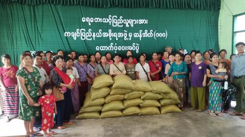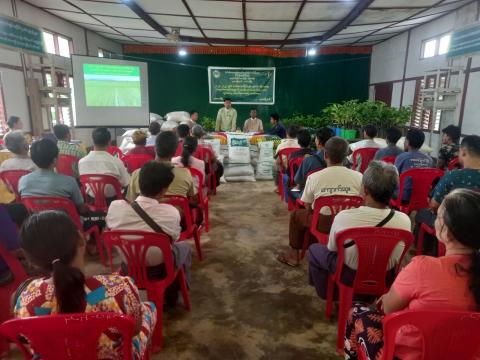 မိုးစပါးပန်းတိုင် အထွက်နှုန်းရရှိရေး အကျိုးဆောင်တောင်သူများအား မျိုးစပါးထောက်ပံ့ပေးအပ်