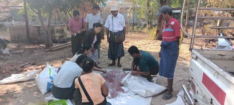 နတ်မောက်မြို့၌ မိုးရာသီ၌ စိုက်ပျိုးမည့် သီးနှံများအလိုက် ဓာတ်မြေဩဇာလိုအပ်ချက်အရ ထောက်ခံနှုန်းထားနှင့်အညီ အချိုးကျပေါင်းစပ်နိုင်ရေး တောင်သူများ လက်တွေ့ပြသ