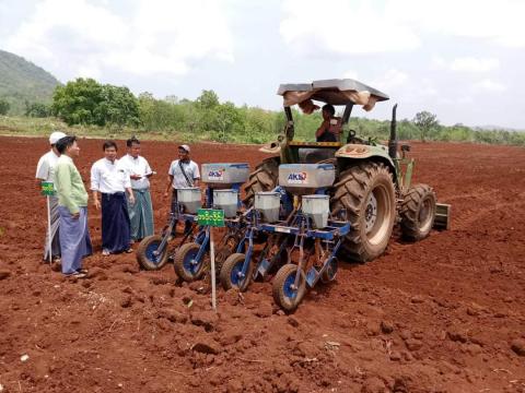 မိုးနဲမြို့နယ်၌ ဆီထွက်သီးနှံနေကြားစိုက်ပျိုးနေမှုကို တာဝန်ရှိသူများ ကြည့်ရှုအားပေး
