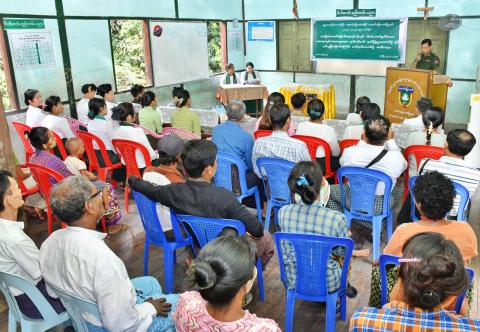 စဉ့်ကိုင်မြို့နယ်၌ ပြည်သူ့စစ်မှုထမ်းသင်တန်း အပတ်စဉ် (၃) အတွက် သင်တန်းသားများအား ဂုဏ်ပြုကြိုဆိုခြင်း အခမ်းအနား ကျင်းပ