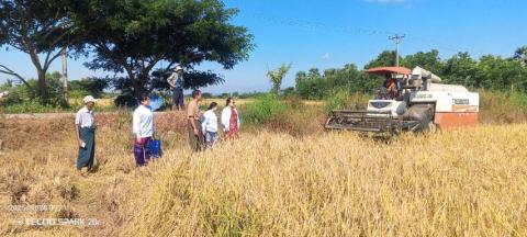 ရန်ကုန်တိုင်းဒေသကြီး၊ သန်လျင်ခရိုင်၊ ကျောက်တန်းမြို့နယ်၊ သောင်ကြီးကျေးရွာ၌ ၂၀၂၅-၂၀၂၆ ဘဏ္ဍာရေးနှစ်တွင် တိုင်းဒေသကြီးဘတ်ဂျက်၊ နိုင်ငံတော်ထောက်ပံ့ငွေ (သက်တံ့ရောင်စီမံကိန်း)ဖြင့် စိုက်ပျိုးရေးလုပ်ငန်းဆောင်ရွက်မှုများအား စပါးရိတ်သိမ်းမှုနှင့် ဝယ်ယူမှုအား ကွင်းဆင်းစစ်ဆေးခြင်းကို နိုဝင်ဘာလ(၆)ရက်နေ့နံနက်ပိုင်းက ကျောက်တန်းမြို့နယ်၊ သောင်းကြီးကျေးရွာ၊ သောင်ယံဦး လယ်ယာနှင့်အထွေထွေရောင်းဝယ်ရေး သမဝါယမအသင်းမှ အသင်းသား ဦးခင်မောင်မြင့်၏လယ်တွင် စပါးရိတ်သိမ်းမှုများအား ကွင်းဆင်းကြီးကြပ် ဆောင်ရွက်ခဲ့သည်။