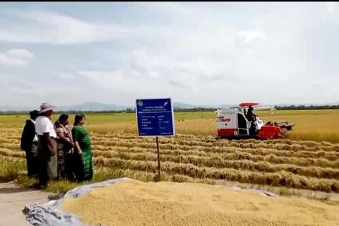 မြိတ်မြို့တွင် မြစိမ်းရောင်(သမဝါယမကဏ္ဍ) နိုင်ငံ့စီးပွားမြှင့်တင်ရေး ရန်ပုံငွေဖြင့် စိုက်ပျိုးခဲ့သည့် မိုးစပါးစိုက်ခင်းများ ရိတ်သိမ်းချွေလှေ့