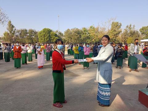 မိုင်းရယ်မြို့နယ်၊ ပြန်ကြားရေးနှင့် ပြည်သူ့ဆက်ဆံရေးဦးစီးဌာနမှ ဦးစီး၍ ၂၀၂၂ ခုနှစ် ဖေဖော်ဝါရီ ၁၂ ရက်နေ့တွင် ကျရောက်မည့် (၇၅)နှစ်မြောက် ပြည်ထောင်စုနေ့အကြို ဆေးရောင်ခြယ်ပြိုင်ပွဲ၊ ကာယစွမ်းရည်ပြိုင်ပွဲနှင့် စာဖတ်စွမ်းရည်ပြိုင်၌ပွဲများတွင် ဆုရရှိသည့် ကျောင်းသား/သူများအား ဆုချီးမြှင့်ခြင်းကို ယနေ့ နံနက် ၉ နာရီက မိုင်းရယ်မြို့၊ အခြေခံပညာ အထက်တန်းကျောင်၌ ပြုလုပ်ခဲ့သည်။