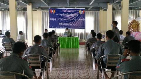 ဧရာဝတီတိုင်းဒေသကြီး၊ မအူပင်ခရိုင်၊ ဓနုဖြူမြို့နယ်တွင် ၂၀၂၀ပြည့်နှစ် ပါတီစုံဒီမိုကရေစီအထွေထွေ ရွေးကောက်ပွဲ အောင်မြင်စွာ ကျင်းပနိုင်ရေး မဲရုံအသီးသီး၌ မဲရုံလုံခြုံရေးအတွက် အထူးရဲများ တာဝန်ပေးနိုင်ရန် အထူးရဲသင်တန်းအား ဖွင့်လှစ်ခဲ့ရာ အဆိုပါ သင်တန်းဆင်းပွဲကို ယနေ့ နံနက် ၇ နာရီ အချိန်တွင် တော်ပေါ်ဘုန်းကြီးကျောင်း ရာပြည့်ဗိမ္မာန်၌ ကျင်းပခဲ့သည်။