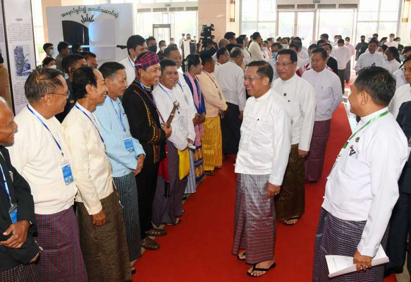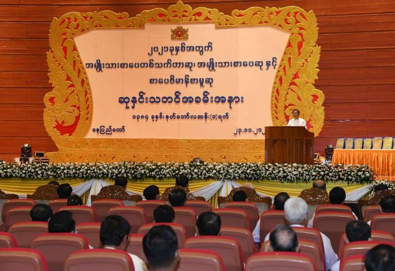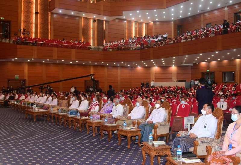 ၂၀၂၁ ခုနှစ်အတွက် အမျိုးသားစာပေတစ်သက်တာဆု၊ အမျိုးသားစာပေဆုနှင့် စာပေဗိမာန်စာမူဆု ဆုနှင်းသဘင်အခမ်းအနားကို ယနေ့နံနက်ပိုင်းတွင် နေပြည်တော်ရှိ အပြည်ပြည်ဆိုင်ရာကွန်ဗင်းရှင်း ဗဟိုဌာန - ၂ ၌ ကျင်းပပြုလုပ်ရာ နိုင်ငံတော်စီမံအုပ်ချုပ်ရေးကောင်စီဥက္ကဋ္ဌ နိုင်ငံတော်ဝန်ကြီးချုပ် ဗိုလ်ချုပ်မှူးကြီး မင်းအောင်လှိုင်တက်ရောက်၍ စာပေဆုများ ပေးအပ်ချီးမြှင့်သည်။