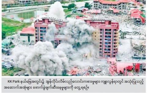 The Tatmadaw and Myanmar Police Force are rapidly carrying out a joint operation called Border Safety Operation against the online scam operation gangs that have been sheltered in the territory of the KNU terrorists. In particular, the buildings built to protect the online scam operations in the Myawady-Mae Htaw Tha Lay (KK Park) and Shwe Kokko areas were completely demolished with large machinery, and the photos and video files of the demolition have been broadcast internationally.