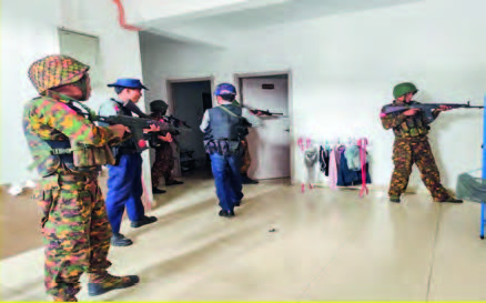 THE government of Myanmar manages a combined team comprising security forces, administrative bodies, and local authorities to raid illegal buildings in the Shwe Kokko and KK Park areas, where telecom fraud and online gambling activities are operated. The team systematically dismantles the confiscated materials and illegal buildings used in online scams and gambling activities.