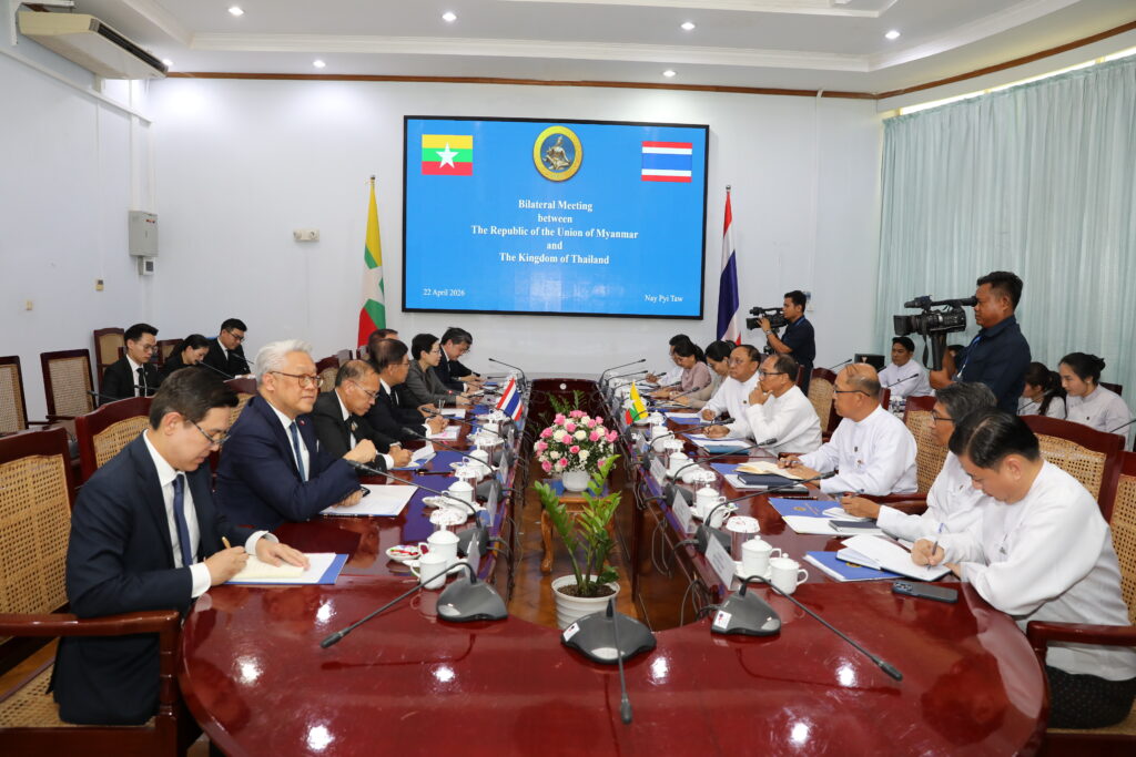 U Tin Maung Swe, Union Minister for Foreign Affairs, held a bilateral meeting with Mr Sihasak Phuangketkeow, Deputy Prime Minister and Minister of Foreign Affairs of the Kingdom of Thailand, who paid a working visit to Nay Pyi Taw from 21 to 22 April 2026, at the Ministry of Foreign Affairs on the afternoon of 22 April 2026.