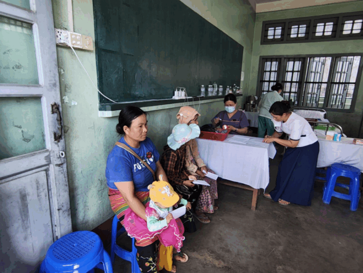 In Kyaukme, Shan State (North), a temporary hospital has been opened at the Labha Muni Chinese Temple, where doctors and nurses from the Ministry of Health and Tatmadaw are collaborating to provide healthcare services for the local population. They provided necessary healthcare services to 104 outpatients and seven inpatients yesterday.