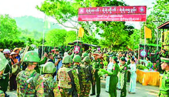 Troops were honoured for restoring security, stability and peace for the ethnic people in different regions and states. The commander and party welcomed back the victorious Tatmadaw members with sprigs of Eugenia, including traditional dance and music performances. The commander presented cash prizes to the victorious Tatmadaw members. — MNA/KZL