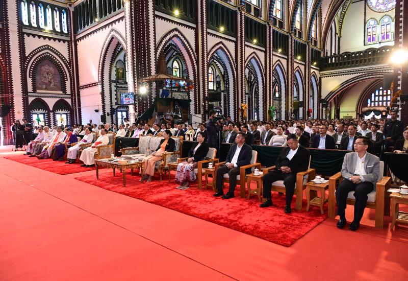 A Christmas thanksgiving and fellowship luncheon ceremony, organized by federations of Christian churches in Myanmar, was held yesterday at Saint Mary’s Cathedral Catholic Church in Botahtaung Township, Yangon Region. The event was attended by Acting President of the Republic of the Union of Myanmar and State Security and Peace Commission Chairman Senior General Min Aung Hlaing.