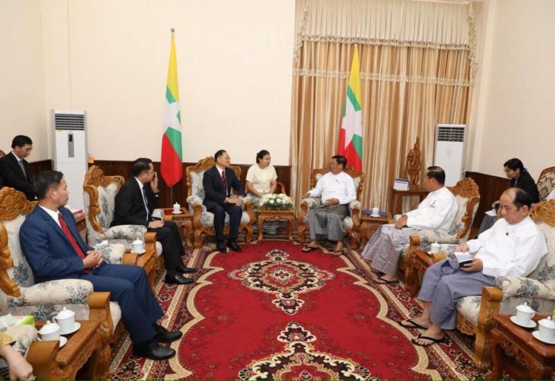U Than Swe, Union Minister for Foreign Affairs of the Republic of the Union of Myanmar, received Mr Chanthavong Seneamatmontry, Chairman of the Lao-Myanmar Friendship Association (Vice-Chairperson of the Foreign Affairs Committee, National Assembly of Lao PDR) and members, at the Ministry of Foreign Affairs in Nay Pyi Taw yesterday.