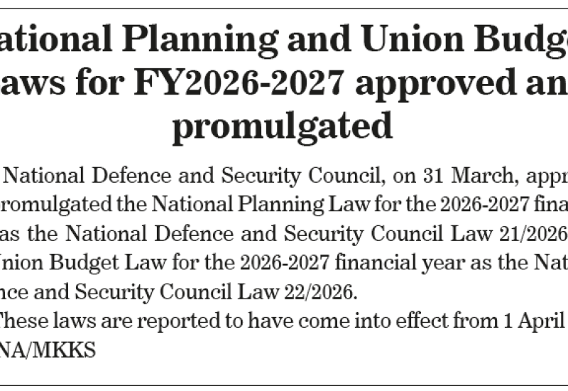 National Planning and Union Budget Laws for FY2026-2027 approved and promulgated