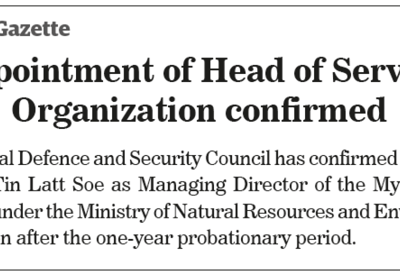 Appointment of Head of Service Organization confirmed