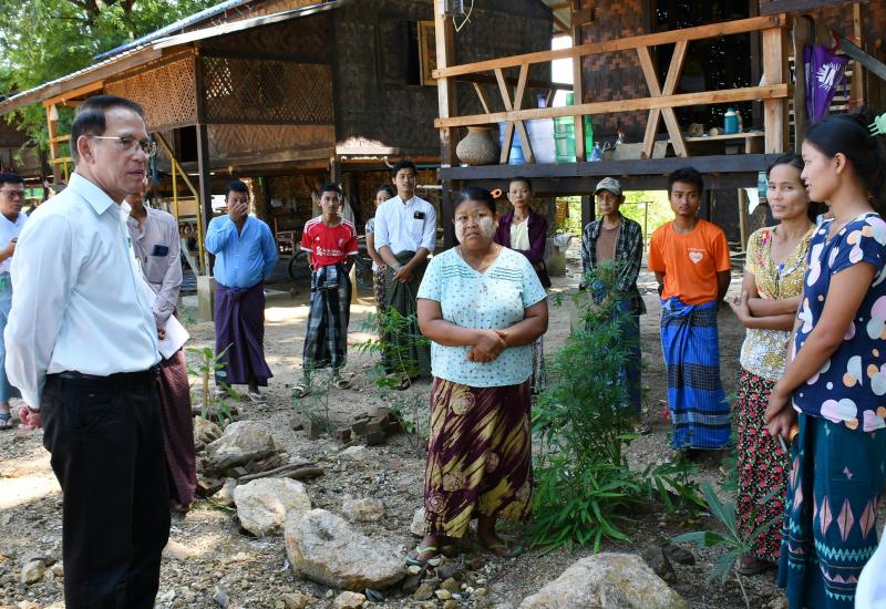 Union Minister for Information U Maung Maung Ohn, Chairman of the Working Committee on Information and Development of a Resilient and Strong Social Community, visited yesterday the disaster-affected villages of Magyeepin and Nyaungpintha in Tatkon Township, Nay Pyi Taw, accompanied by committee members and departmental officials, to inspect the progress of activities aimed at building a resilient and strong social community and to address the needs of the local people.
