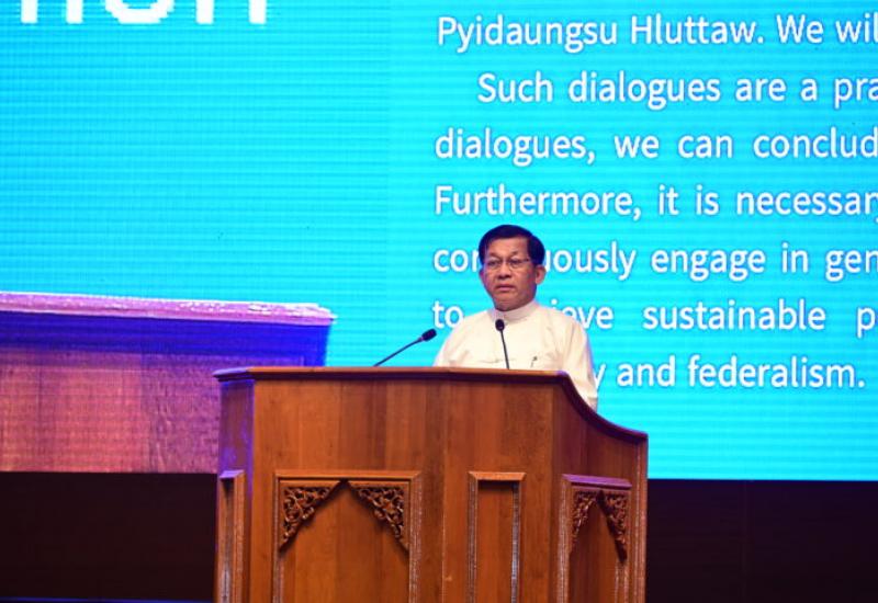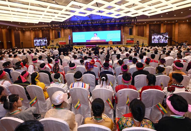 Acting President of the Republic of the Union of Myanmar, Chairman of the State Security and Peace Commission of the Republic of the Union of Myanmar and Chairman of the National Solidarity and Peacemaking Central Committee Commander-in-Chief of Defence Services Senior General Min Aung Hlaing delivered an address at the 10th Anniversary Celebration of the Nationwide Ceasefire Agreement (NCA) at the Myanmar International Convention Centre I (MICC I) in Nay Pyi Taw yesterday morning.