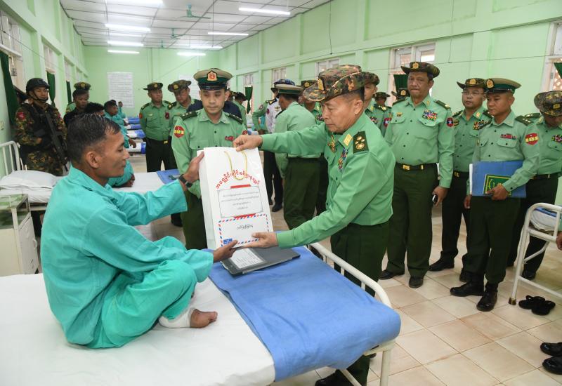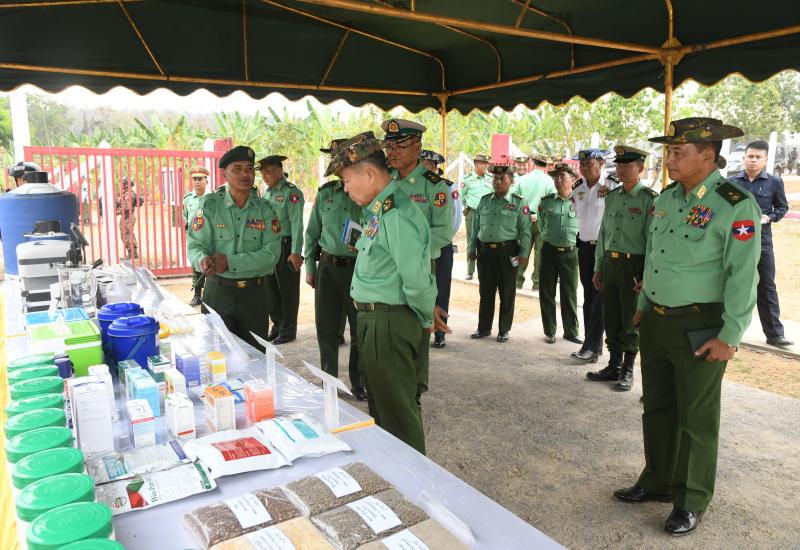 State Security and Peace Commission Vice-Chairman, Defence Services Deputy Commander-in-Chief, and Commander-in-Chief (Army) Vice-Senior General Soe Win, accompanied by senior Tatmadaw officers from the Office of the Commander-in-Chief and the commander of the Eastern Command, inspected local regiments and units, and training schools in Bahtoo Cantonment today.