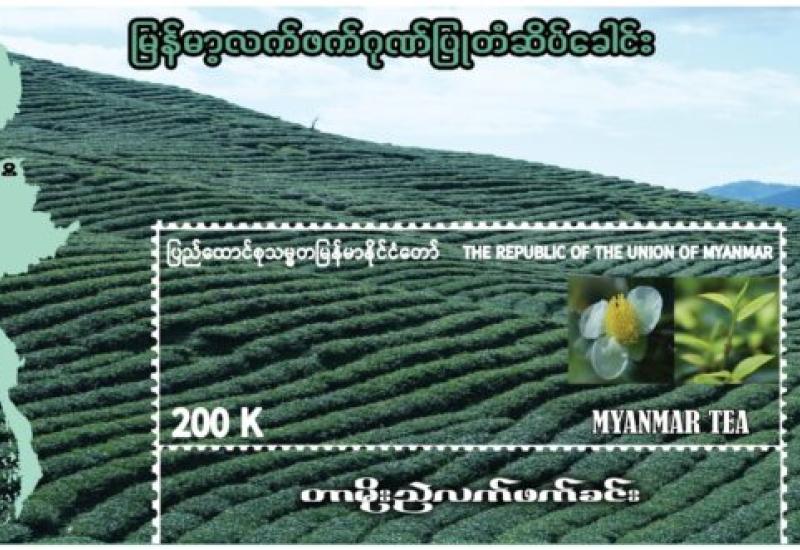 The Ministry of Transport and Communications has announced that Myanma Post will issue a new special commemorative postage stamp featuring an image of a Myanma tea plantation (K200) in honour of tea cultivated and produced in Myanmar.