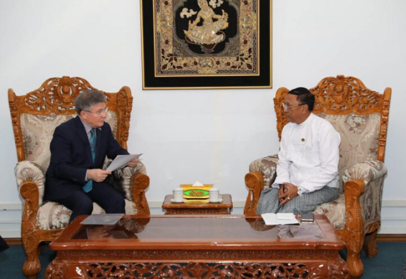 Deputy Minister for Foreign Affairs of the Republic of the Union of Myanmar U Ko Ko Kyaw received Ambassador of the Russian Federation to Myanmar Mr Iskander Azizov at the Ministry of Foreign Affairs in Nay Pyi Taw yesterday.