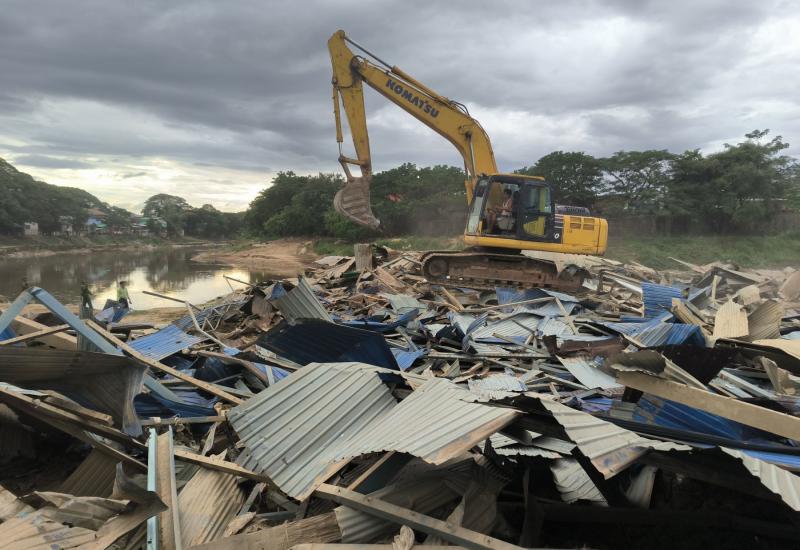 Illegal gates have been opened along the banks of the Thaungyin River in Myawady Township, Kayin State, where armed terrorist groups have been collecting money to import, store, and distribute illegal goods from abroad. Tatmadaw has now regained control of such area and is demolishing those trade gates and warehouses used for storing and distributing such goods.