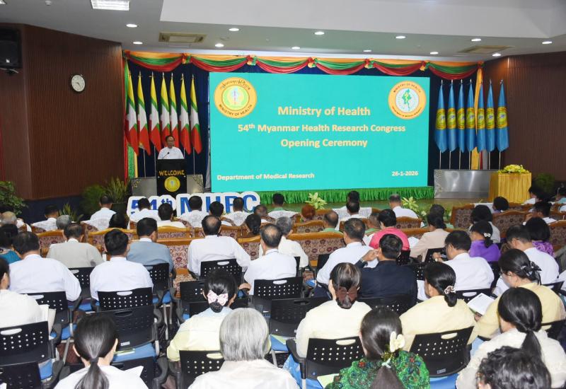 The opening ceremony of the 54th Myanmar Health Research Congress took place at the Department of Medical Research (Head Office), No 5, Ziwaka Road, Dagon Township, Yangon, yesterday, with a video message sent by Acting President of the Republic of the Union of Myanmar and State Security and Peace Commission Chairman Senior General Min Aung Hlaing.